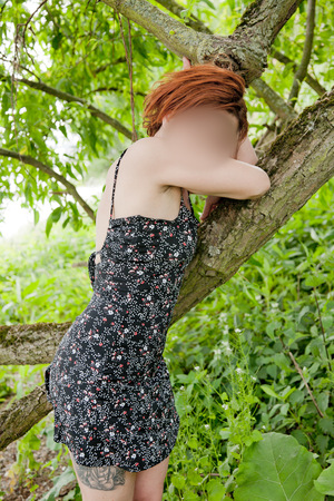 Haare:rot, schulterlang, glatt