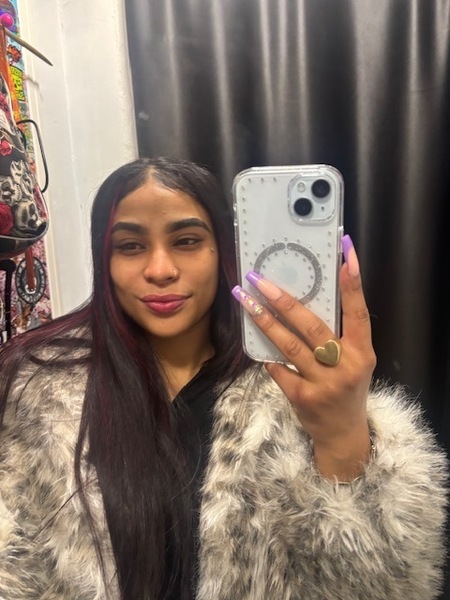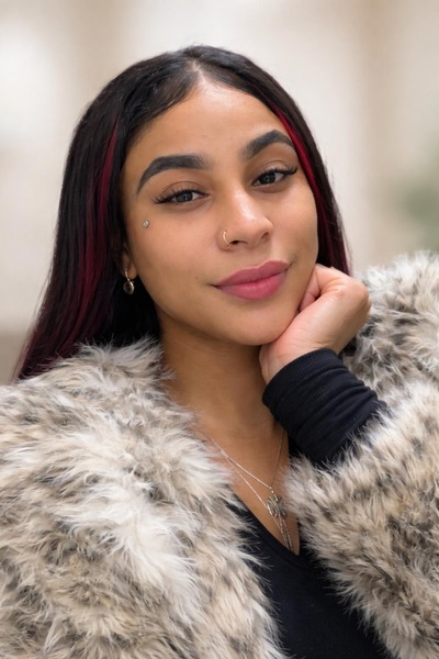 Haare:schwarz, rückenlang, glatt