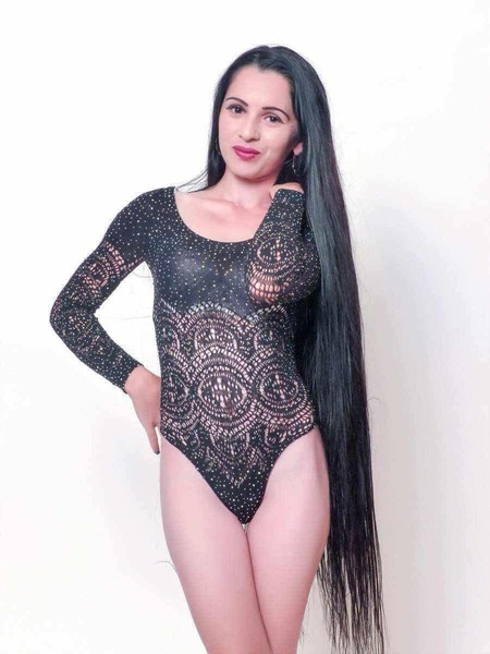 Haare:schwarz, rückenlang, glatt